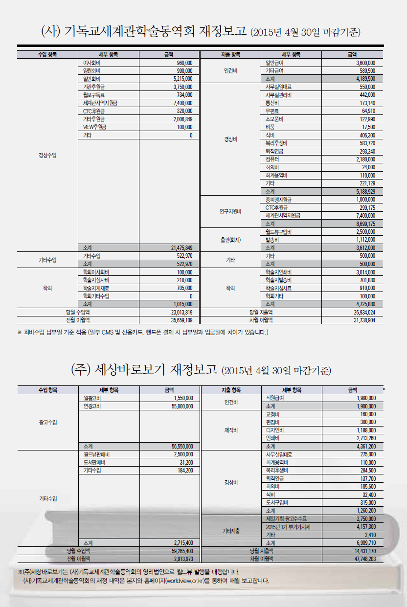 2015년 사단법인 및 월드뷰 4월 재정보고